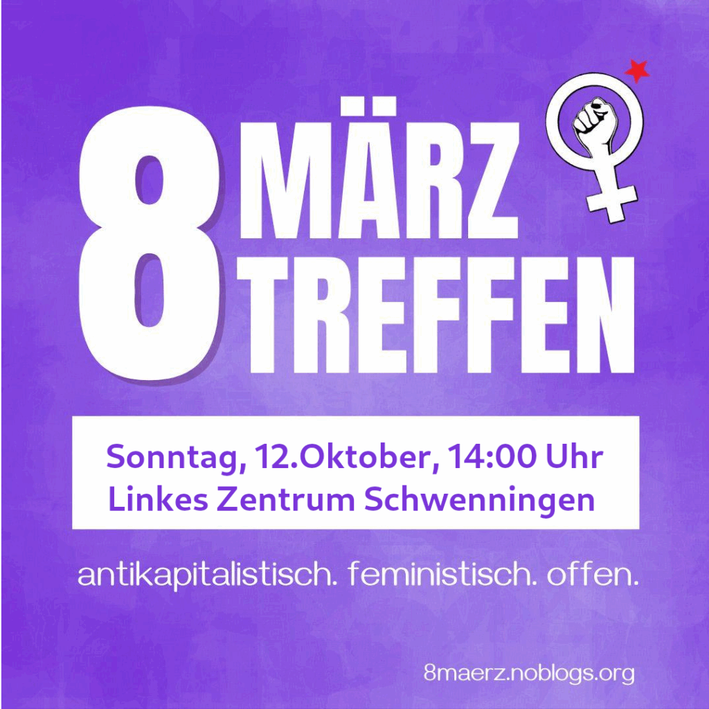 Einher geht diese neoliberale Agenda mit einem reaktionären, rassistischen, sexistischen, dem Mottenkiste des Patriarchats entsprungenen Frauenbild von AfD, klerikalen Gruppierungen und offenen Faschos. Den Rollback, der in den letzten 50 Jahren feministisch erkämpften Fortschritte, lassen wir nicht zu. Wir kämpfen für eine lebenswerte Perspektive, für eine solidarische Gesellschaft ohne Ausbeutung, Umweltzerstörung, Rassismus, Vertreibung und Krieg.