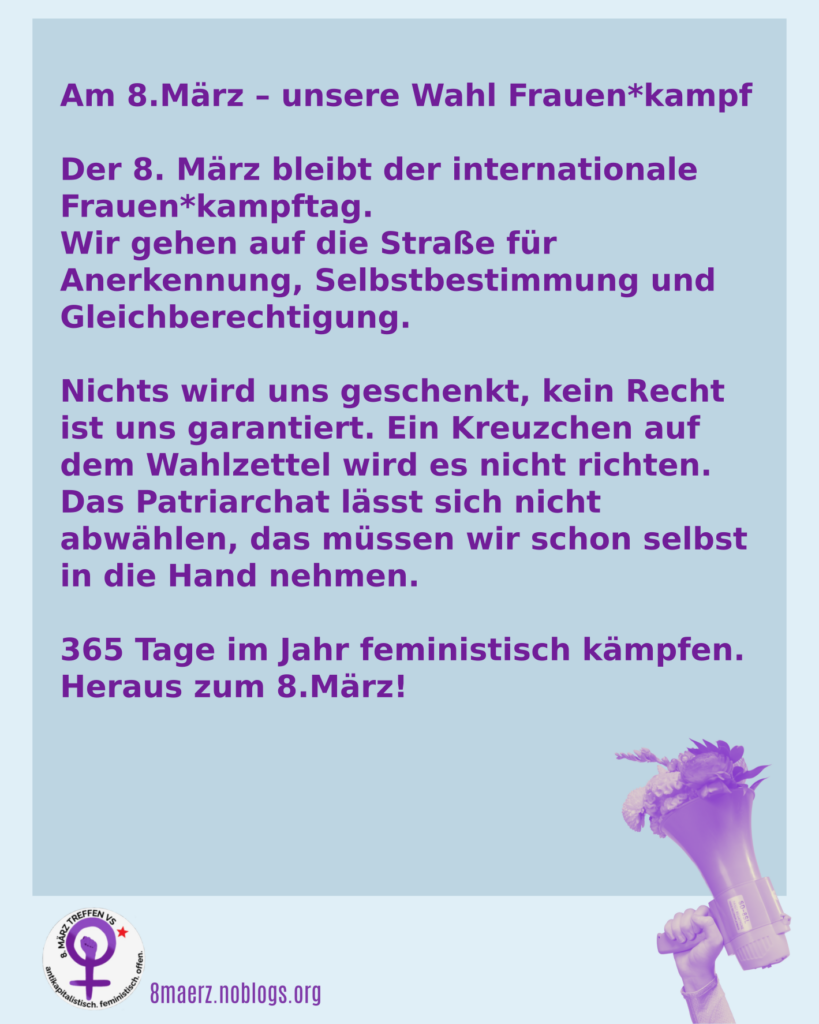 Vorheriger BeitragZurück 8.März 2026 – Am Internationalen Frauen*kampftag auf die Straße!