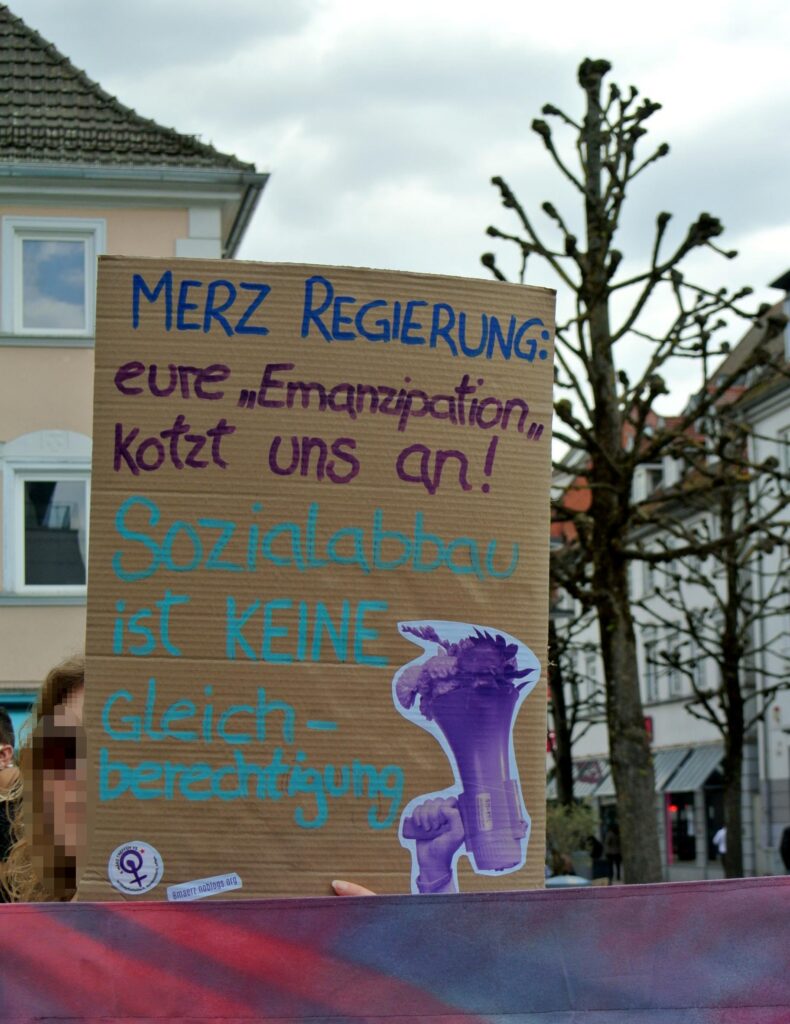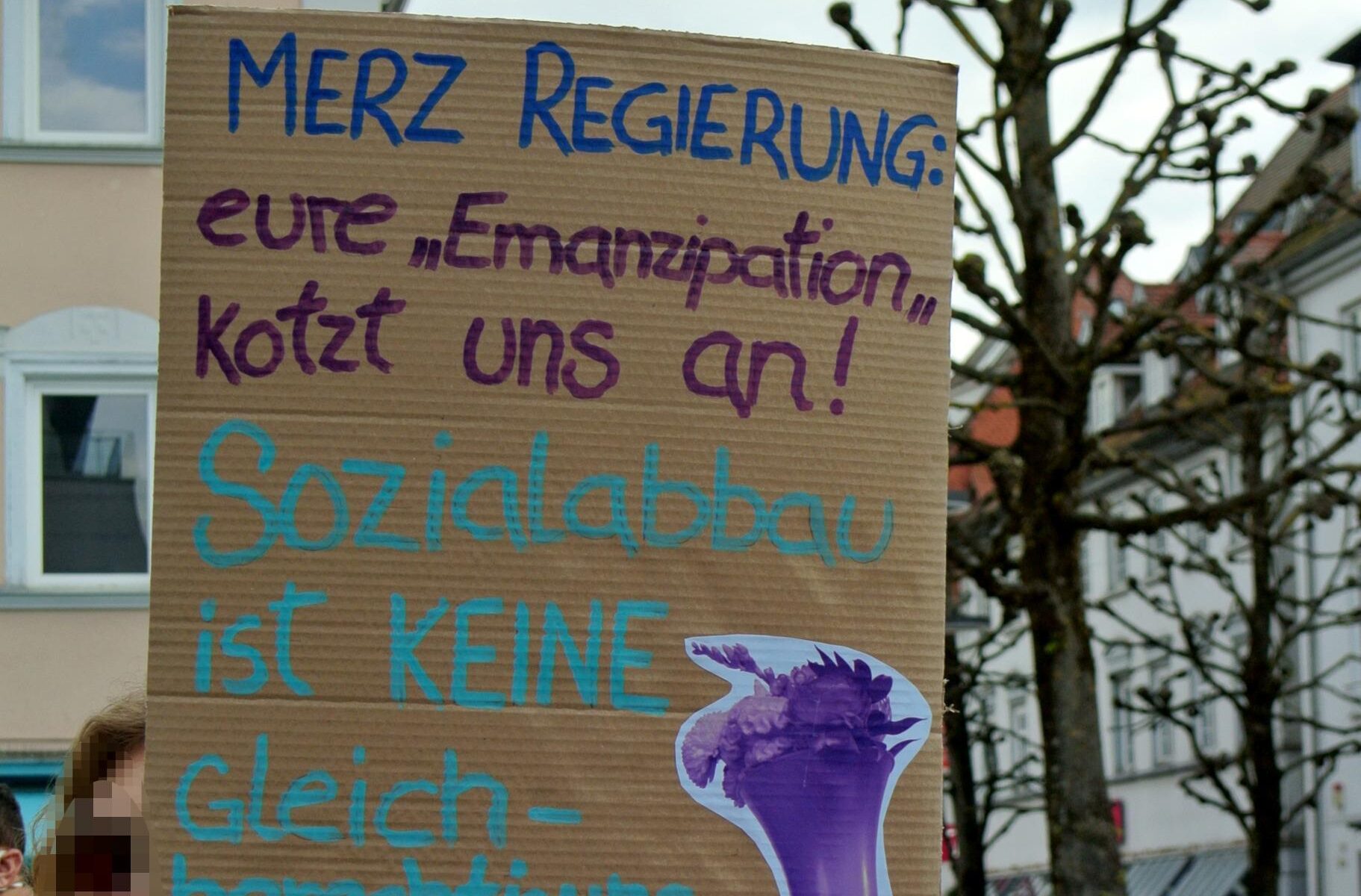 Doch die Merz Regierung, Sparpolitik und Sozialabbau wird Frauen weiter in finanzielle Abhängigkeit und Armut treiben und das hat nichts mit Emanzipation und Gleichberechtigung zu tun.